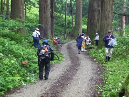 令和5年6月25日、本日は、11年目を迎える慈光寺杉並木参道清掃ボランティア活動日。樹齢300年から500年とされる杉並木を守り保存するための参道の草刈、清掃等を行います。今回は多くのボランティア参加者はもとより、新潟県より橋本副知事と佐野教育長をはじめとする職員の皆様からも清掃活動にご参加頂きました。本当に感謝です。はげみになります。現在この杉並木は、県指定の文化財となっていますが、国指定を目指して活動を続けて参ります。100年1000年とこの杉並木を守る活動を継承していかなけれはなりません。ご賛同頂ける皆様より様々な角度からご支援を賜りますよう宜しくお願い致します。
