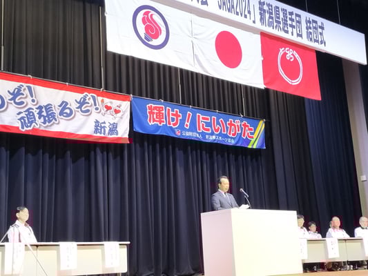 令和6年9月8日、新潟ユニゾンプラザにて国民スポーツ(国体)大会県選手団結団式が開催され出席にて祝辞。