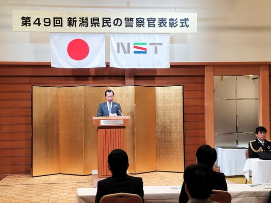 令和6年11月12日、オークラホテル新潟にてNST主催の第49回県民の警察官表彰式に議長代理で出席にて祝辞。