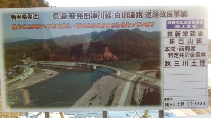 主要地方道県道新発田津川線の三川地区内で、阿賀野川を渡り国道49号線に直結する橋長253mの白川大橋(仮称)の建設がすすむ