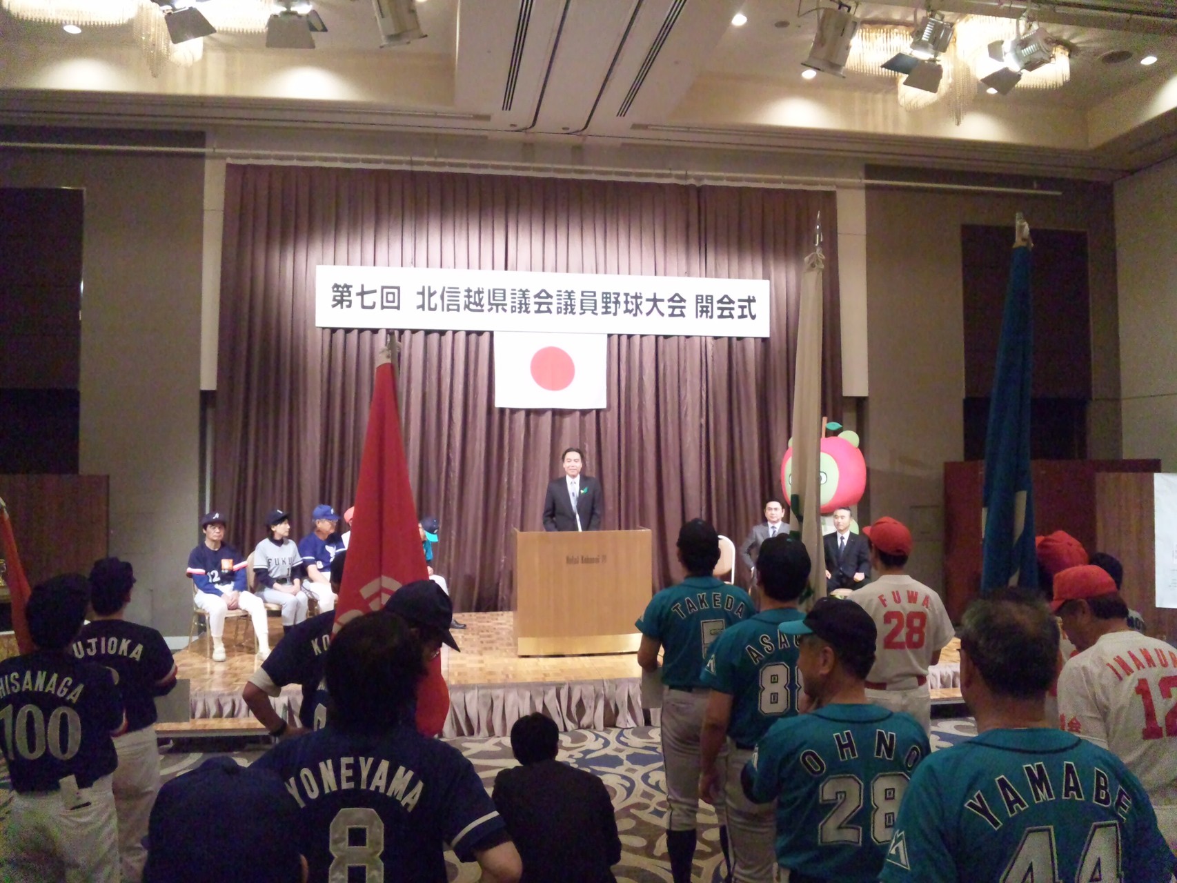 本日から北陸信越地区県議会野球大会が開催され参加。24日夕方は、開会式レセプションパーティー。組合せ会により第一試合富山県と試合。25日早朝より第一試合。予想通り??対1で新潟県敗退。次は全国大会にかける。