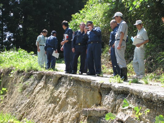 五泉市役所会議室にて被害状況説明の後、林道の被害箇と咲花温泉被害箇所視察。その後、阿賀町役場にて同じく被害状況説明、及び現地視察を実施。