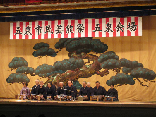 トップは謡の会 観泉会による高砂でスタート、私は皆さんの写真をフォーカス。相田豊五泉市議会副議長も10時から会場で一緒に観賞。約30団体の参加。午後1時に皆さんの前でご挨拶。
