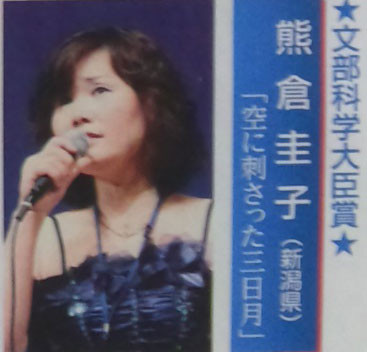 去る10月10日に第27回日本大衆音楽祭で、五泉市の熊倉圭子さんが全国準優勝の文部科学大臣賞を受賞されました。