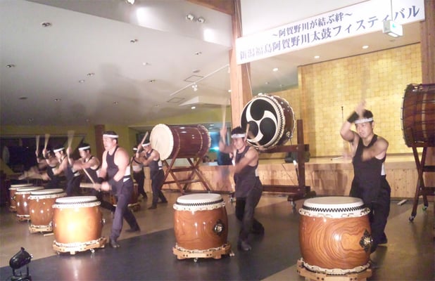 地元の太鼓チームや、よさこいチームの皆さんの演技をご披露頂いた後、世界的に評価の高い、福島県の愛宕陣太鼓連響風組の皆様による太鼓演奏を拝聴した。