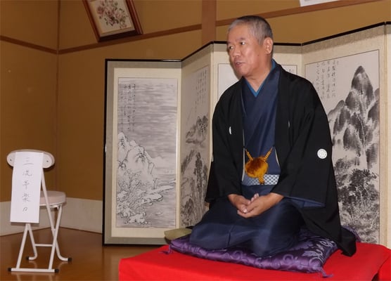 本日、五泉市の川島宅で、元新潟県警の警察官だった三流亭楽々師匠より落語を拝聴させていただいた。