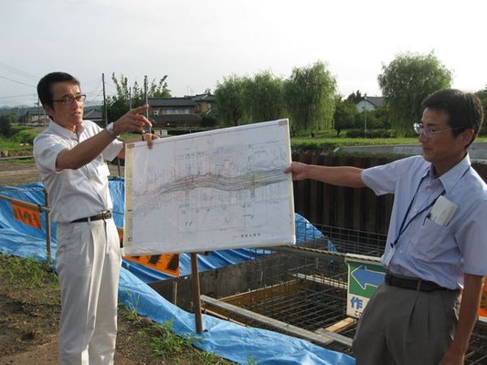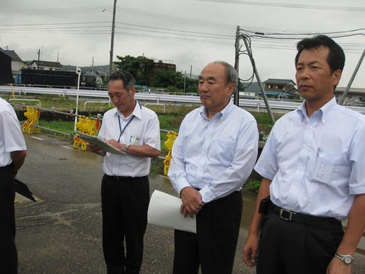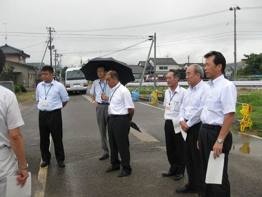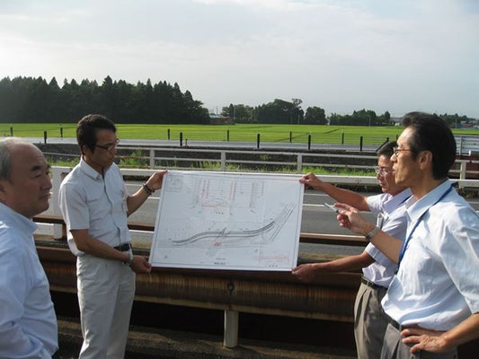 参加者は、県から新津地域整備部、星野部長、高井副部長、熊倉計画調整課長、井上維持管理課長、島田工務課長。五泉市からは、伊藤市長、塚野都市整備課長、関塚上下水道局長他関係職員と私(小島)で現地視察実施。