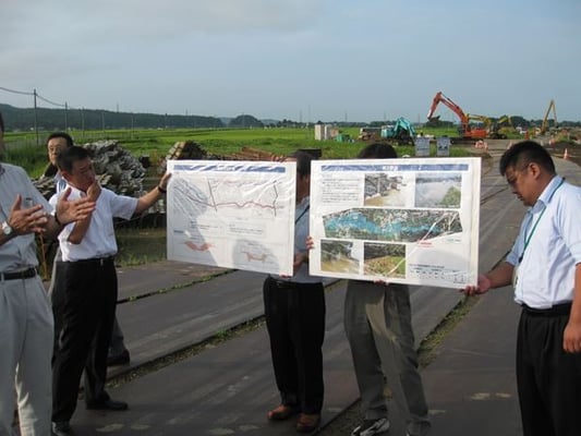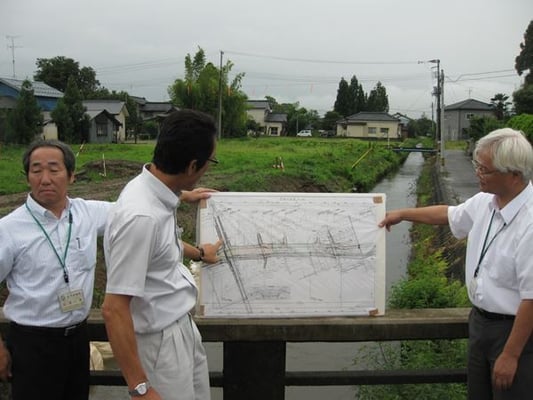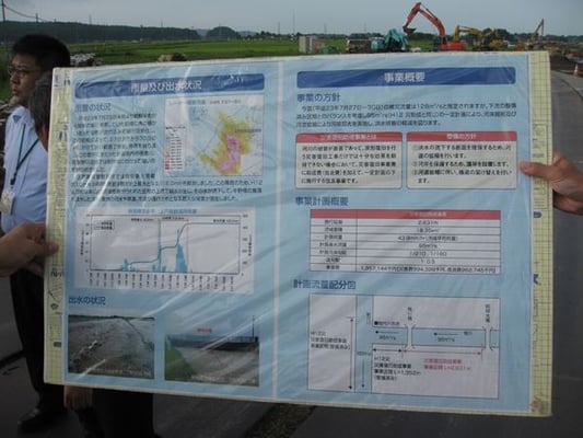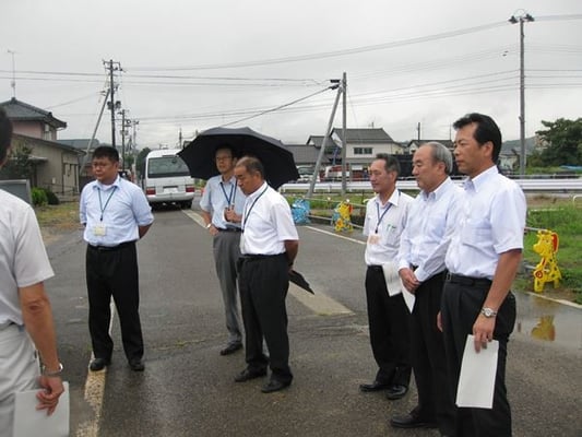 参加者は、県から新津地域整備部、星野部長、高井副部長、熊倉計画調整課長、井上維持管理課長、島田工務課長。五泉市からは、伊藤市長、塚野都市整備課長、関塚上下水道局長他関係職員と私(小島)で現地視察実施。