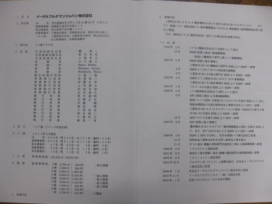 本日、イーグルブルクマンジャパン㈱新潟工場に訪問。北井新潟工場長と千葉副工場長からお忙しい中時間をさいて頂いて新潟工場内を見学させて頂き、会社の事業内容や今後の方向性等をご説明頂いた。事業の主な内容は、工業用メカニカルシール製品、ロータリージョイント、カップリング、溶接ベローズ、磁性流体シール、ガスシール等・・・・、普段我々の目に見える日常生活上ではなじみが薄いが、ポンプやモーター等、水や油、科学用液や気体をシリンダー等の軸から漏らさないための部材(シール製品)を世界に生産販売している。全社員800余名のうちここの新潟工場に約700名の社員が働いているとのこと。お昼頃には社員専用の食堂でお昼をご馳走になりました。聞くところによると、日替わりの定食が一食200円で専門家によるカロリー計算されたメニューとのこと。私も頂きましたが、ボリュームもあって豪華でしかもダイエットになるとのことなので、これで200円だったら毎日行きたい。大変ご馳走様でした。