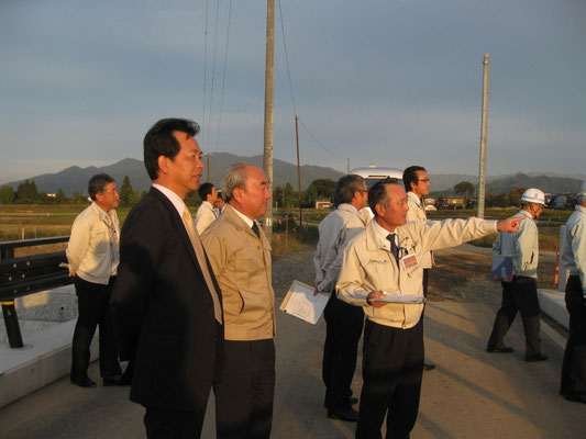本日、例年行っている五泉市管内要望ヶ所視察会を開催。今まで毎年7月頃に開催していたが、何かとこちらの都合がつかず、この10月に行うこととした。県の土木事業に関する五泉市の要望ヶ所の視察会は、新潟地域振興局新津地域整備部の正副部長はじめ各課長の皆さんと五泉市長はじめ都市整備課および上下水道課の課長はじめ職員の皆様とがバスに乗車して各ヶ所をまわり要望や現況、予定、方向性等をやりとりする。視察会終了後は、澤野県議も出席して意見交換会および懇親会。