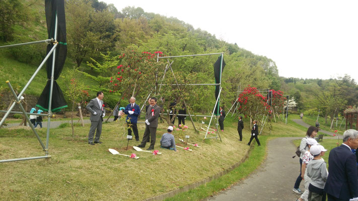 本日は、秋葉区の県立植物園にて新潟県立植物園開園20周年記念事業シャクナゲ開園式に出席にて植樹。みごとな西洋シャクナゲが赤く綺麗に咲いていて見ごろであった。